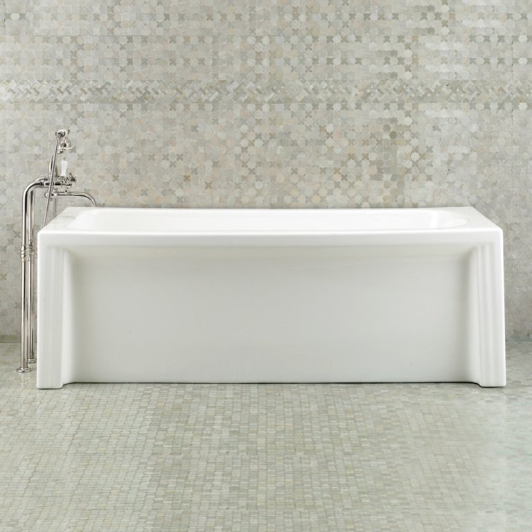 Beyond those two silhouettes, the single-ended bath is perhaps the most classic design, in which one end is rounded for comfortable reclining. Similarly, the single slipper also has one end for lounging, which rises up to resemble, not surprisingly, a slipper. There’s also the double-ended style, with two rounded ends that allow you to choose which side you’re on (also a great pick for two people). Likewise, the double-slipper is also raised on both sides and, depending on size, could accommodate two bathers. With the double-ended and double-slipper styles, the faucet and drain will likely be in the center.