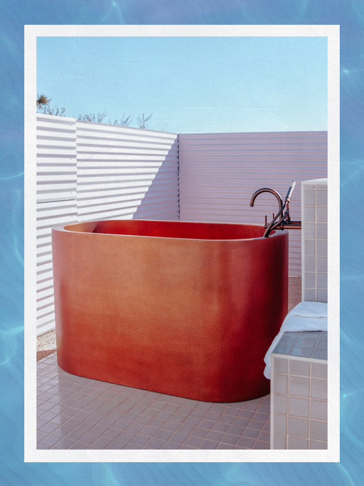 For designer Natalie Myers, Signature Hardware is a trusted resource for freestanding tubs, and particularly for the vast selection of sizes and shapes in the resin category. “I never order acrylic freestanding tubs because they feel too slight and bulbous in a plasticky way,” she says. “Signature Hardware is helpful with more traditional silhouettes if you are updating an older house, as well as offering copper tubs.” The Kentucky-based brand has been around since the late ’90s and is known among designers for its collection of well-made bathroom and kitchen pieces that span fixtures to vanities.