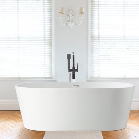 The size of your freestanding tub will largely depend on the square footage you’re working with. “Larger tubs (70-plus inches) are better for taller people, but make sure you have the clearance you need around the tub for cleaning—a few inches all around—so the space doesn’t feel too crowded,” Myers says. Weight also plays a factor. “Make sure your floorboards or joists can support the bath you go for,” Green says. “You may need to reinforce the floor for a stone bath.”