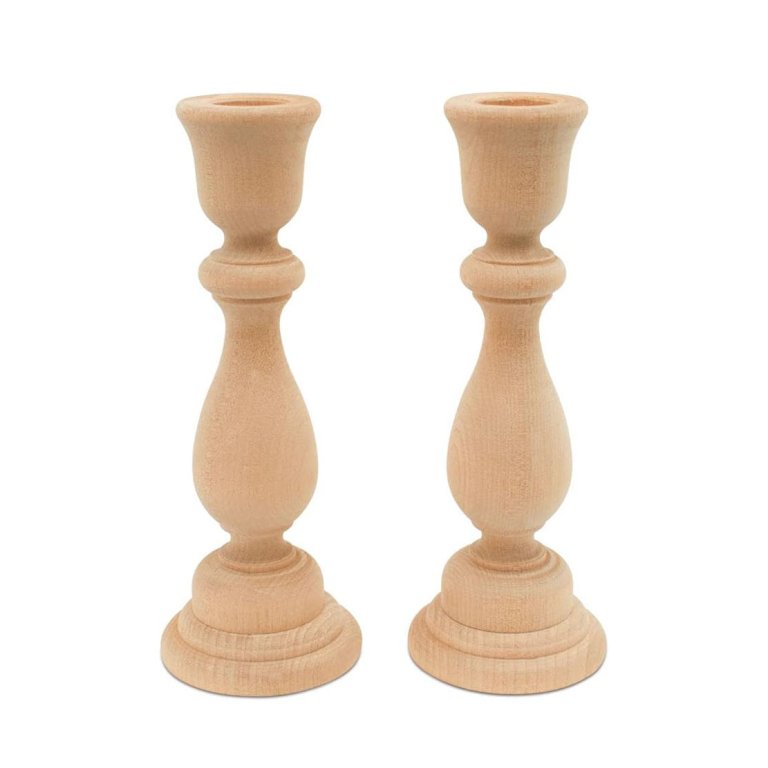 Woodpeckers Classic Wooden Candlesticks, Set of 4