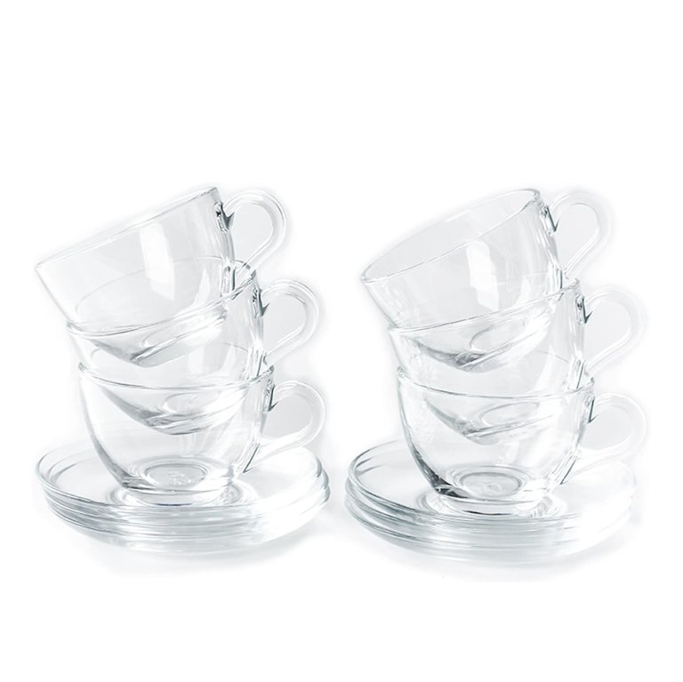 Tosnail Glass Tea Cups & Saucers, Set of 6