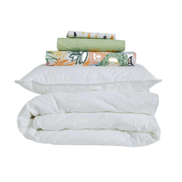 How often should you throw everything in the wash? We think a good rule of thumb is once a week for sheets, and every quarter for a duvet. Because, let’s be honest, you’re not unbuttoning your kid’s comforter more than you have to.