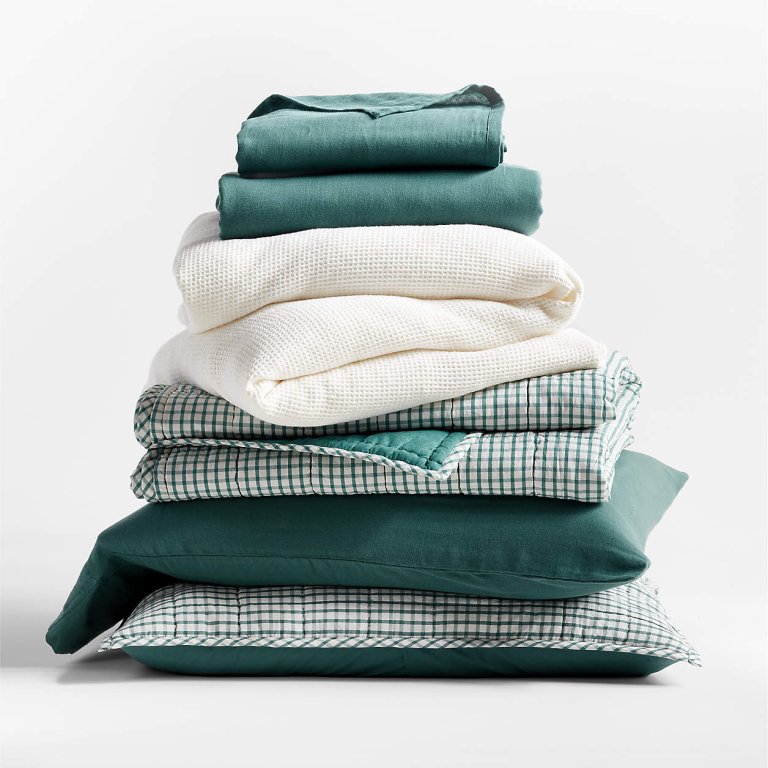 As for specific materials: “Kids love jersey for sheets because it’s soft and stretchy. And I love anything 100% cotton, because it gets softer with every wash,” she says.