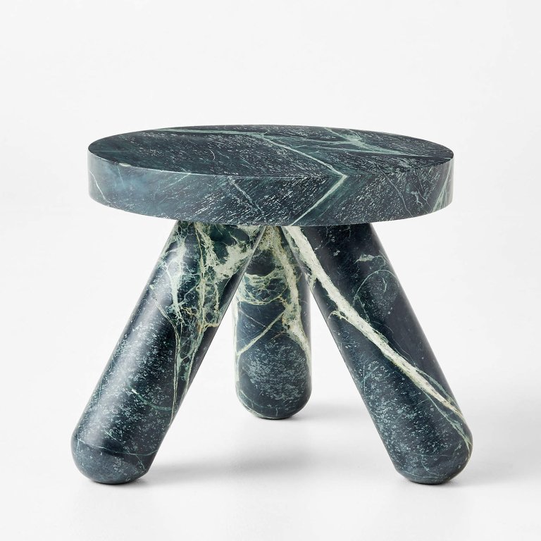 Not too different in shape from Charlotte Perriand’s famous Tabouret stool, CB2’s Jaxx style offers a whole lot of look for being only 14 inches tall. Veiny marble, available in green, red, and white, adds a graphic hit that makes it strong enough to stand on its own as a sculpture.