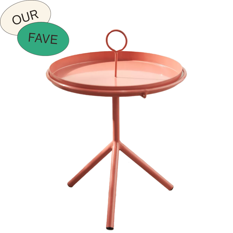 Some of the most affordable options on this list are made from metal—this includes pretty powder-coated steel and artfully shaped iron styles. Aside from being weather resistant, this material is lightweight and offers a more streamlined silhouette. Our colorful favorite from Anthropologie (also offered in green and peach) costs just $58 and features a tray-top that’s ready to support your summer drink of choice. You might also recognize the Christopher Knight outdoor side table, featured below, as another top pick we saw on Amazon for under $100.