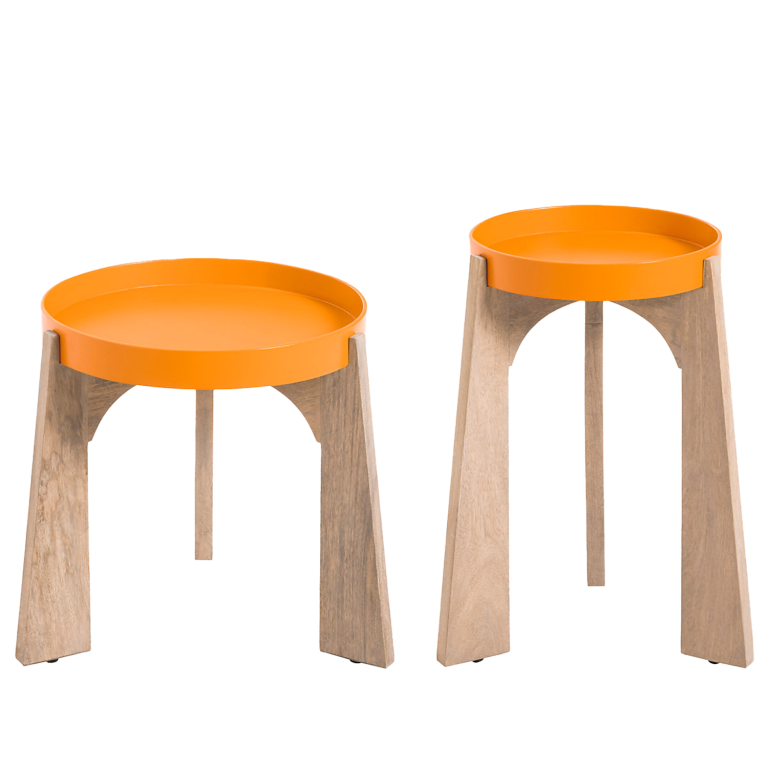 Teak is always a solid choice for outdoor furniture, at the very least because it is a naturally hardy material that gently patinates over time. Our top pick, from Rejuvenation, is crafted from just that—and, as an added bonus, is FSC certified, too. If you’re looking for some color and a tad bit more versatility, the modular side table from Annie Selke comes topped with a removable tray in a rainbow assortment of hues. We also love the forest green lacquered bamboo nesting tables from One Kings Lane, which offer two surfaces in one.