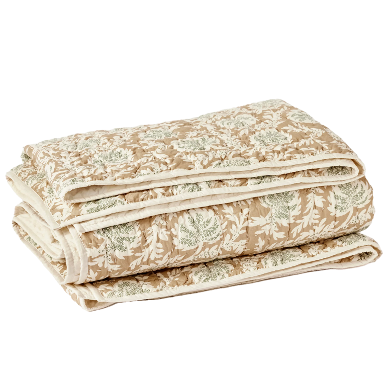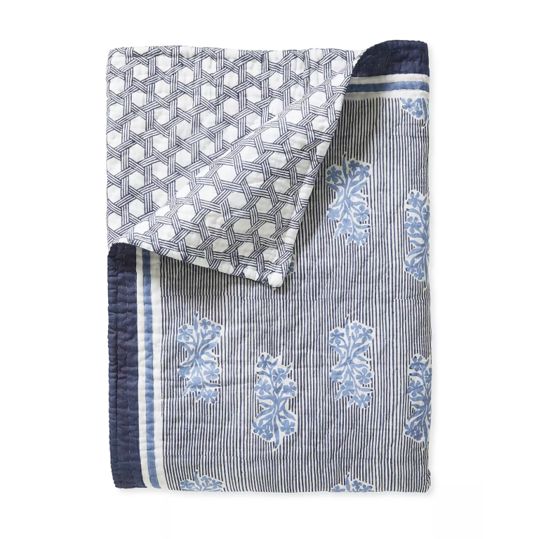 They say a rug ties a room together, but we’d argue that a quilt does the job even better. Stitched patterns over block-printed florals and graphic grids in punchy palettes draw the eye in so much so that, as far as we’re concerned, it doesn’t really matter what else is going on.