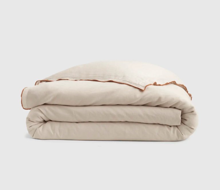 You want a duvet cover that will carry whatever mismatched set of sheets you scrounge up. The kick of color along the edge elevates this staple, but the neutral palette means it’ll look good with any pattern or color underneath.