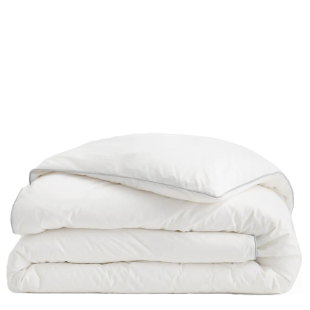After spending much of the summer away, we’re predicting that this fall’s bedding trend is all about staycations—we’re saying hello to hotel-style duvets, shams, and bolster pillows, and goodbye to laid-back linen (for now, that is). To get the look, our style editor, Julia Stevens, carefully curated all-white sheets, a mix of preppy trims, and statement-making cushion covers. Of her favorites, readers resonated with Quince’s cool and crisp percale duvet set the most. Aside from its breathable weave, its neutral white and gray color combo features a subtle piping that elevates it from a basic to a luxury item.