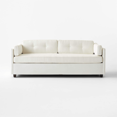 Hundreds of items at West Elm have been sporting discounts as high as 50% this month, but we’ve got our eye on the 20% off small space–friendly Hampton sofa in white linen.