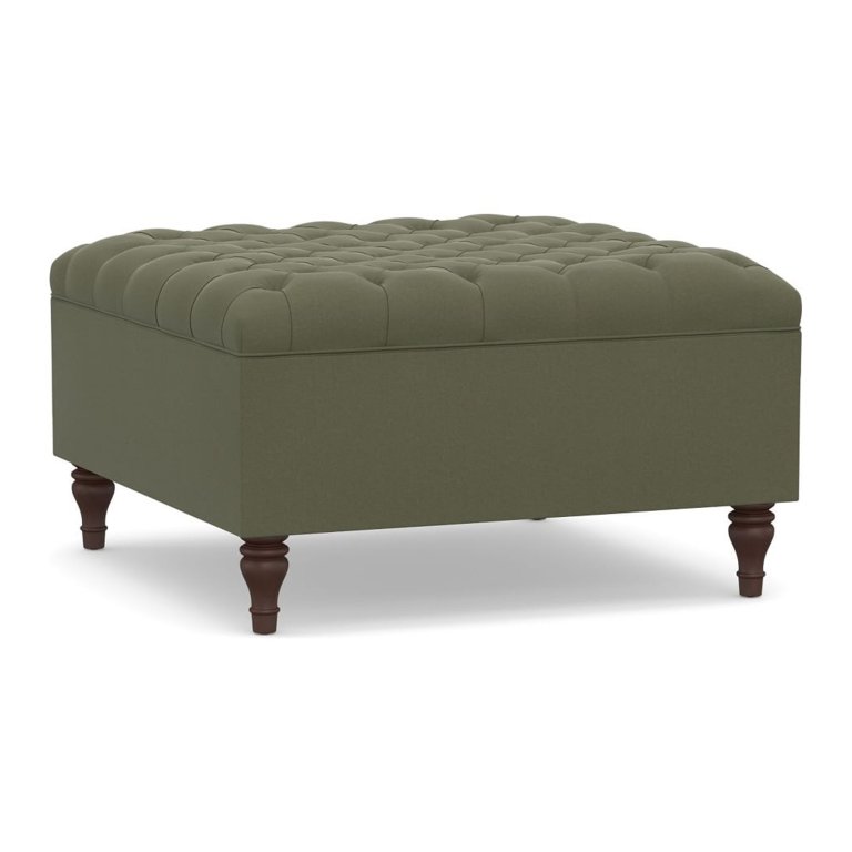 - Best traditional tufted: Pottery Barn Lorraine Upholstered Tufted Square Storage Ottoman