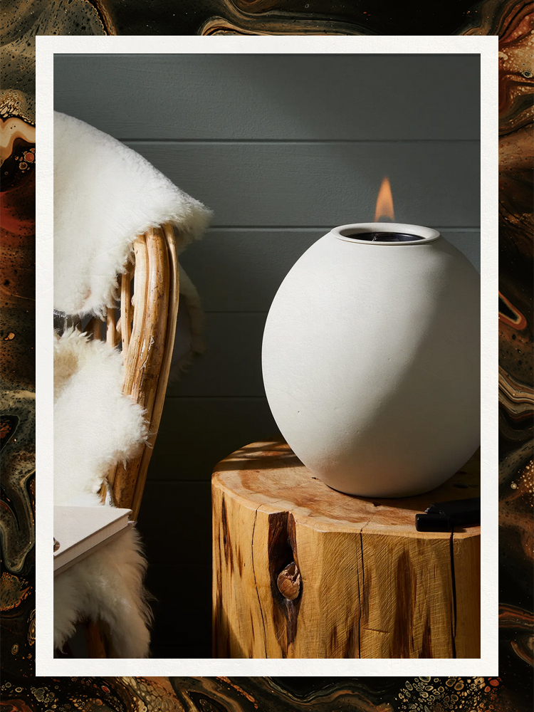 This personal firepit is a nice addition to a party tablescape, particularly because it’ll stay lit for hours without any attention. No, it will not stand up to gale-force winds, but where a light breeze will blow out a candle, this alternative keeps burning. Made from concrete, the sculptural, vessel-like design is solid and heavy, so it should have a designated spot on the table. Just fill the glass canister with Lovinflame fuel, light the stainless steel mesh wick, and enjoy yourself. Any fuel left over in the glass canister can be poured back into the bottle for subsequent use.