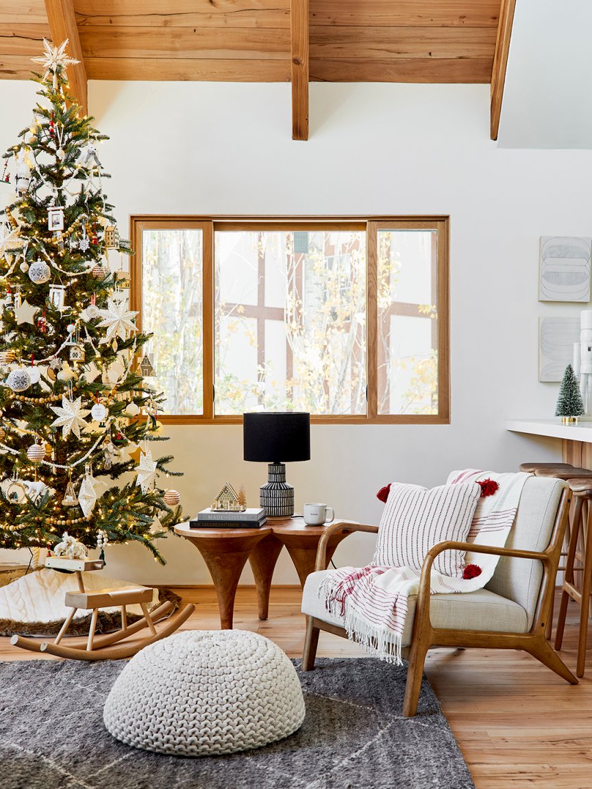 In instances when you can’t find a skirt big enough to cover your tree stand, there are a couple of crafty DIY hacks you can try. One of the easiest routes is simply buying an oversize throw blanket or a bunch of extra fabric and bunching it around the base of your tree. Or just do as Shea McGee did a couple of years back and stuff it in a big basket.