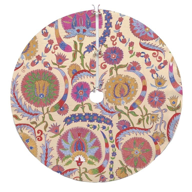 Combining a maximalist pattern and luxe fabric is one foolproof way to achieve fancy festive vibes. When it comes to nontraditional tree skirts, we look for vibrant, unusual palettes and whimsical details, whether scalloped trim or felt fringe or a pom-pom–adorned edge.