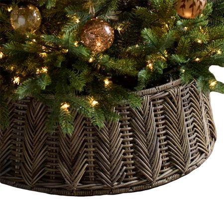 We’ve been very into tree collars as a skirt alternative since we spotted Shea McGee’s hack using a willow woven basket a few Christmases ago. Lucky for us, her McGee & Co. shop now includes a wicker look-alike. “This is so pretty in person and fit my bulky tree stand perfectly,” one reviewer writes. Other benefits of going with a collar or cuff: This is the type of treatment that will refuse to look rumpled or get caught, always staying neat and tidy in place. Unsurprisingly, our top picks either feature braided wicker or rope and slats of painted wood.