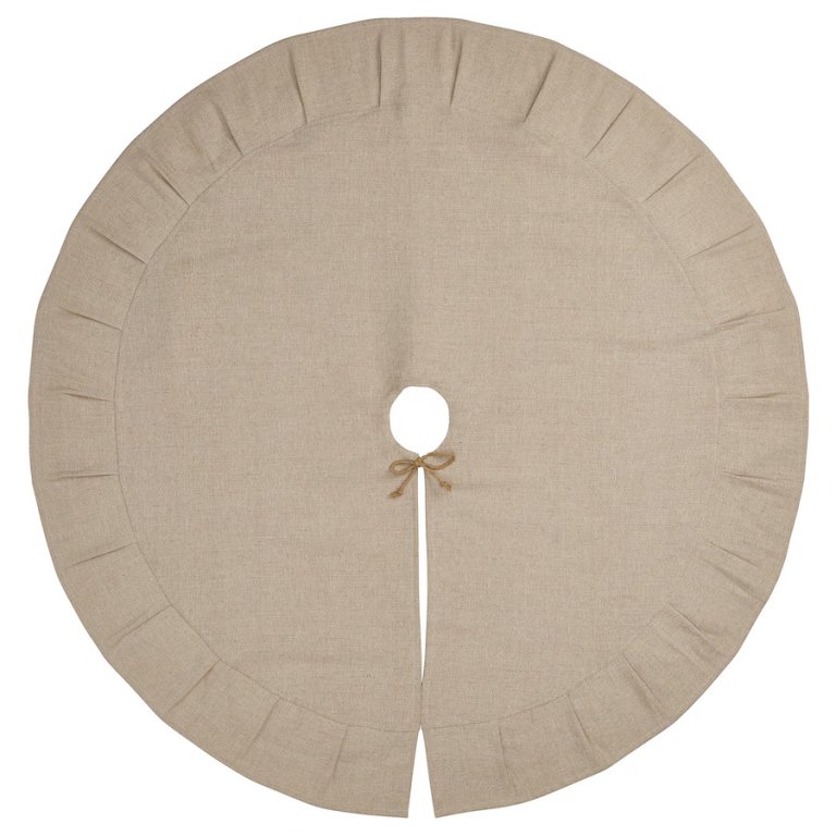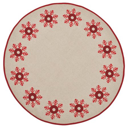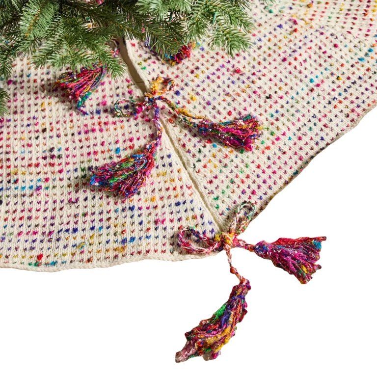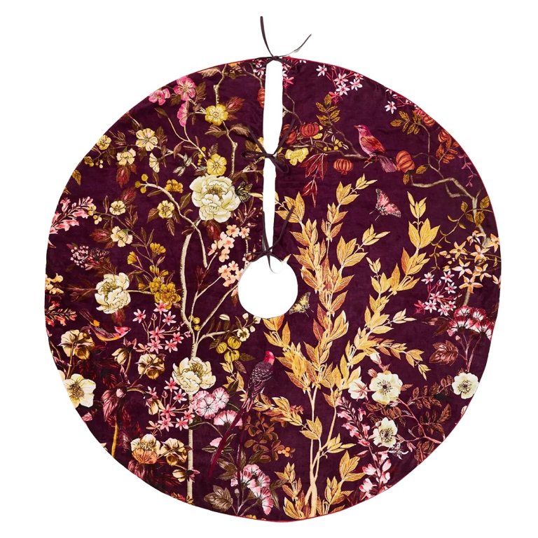 If your Christmas vibe is more akin to the Cotswolds cottage featured in The Holiday, take the rustic tree skirt route. Our favorite designs that fall under this category offer warmer, woodsier tones and textures that remind us of the real base of a tree. These styles also have a tendency to lean into traditional and vintage-inspired patterns—both the embroidered options from Julia Amory and IKEA recall Scandinavian prints that would look right at home at an après-ski lodge.