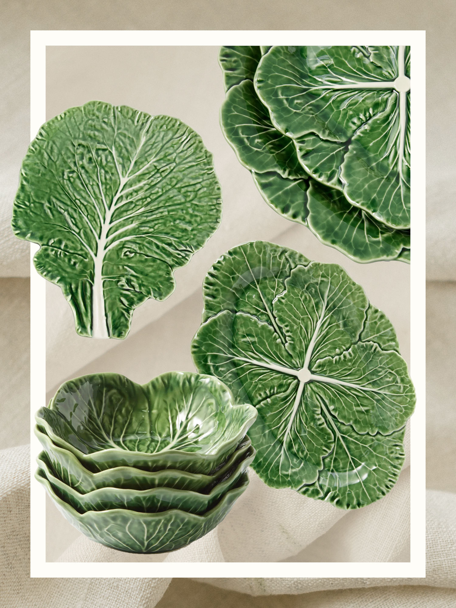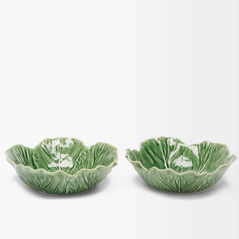While I’ve had some luck sourcing the ceramics at vintage stores, Bordallo Pinheiro still manufactures lettuceware (and tomatoware, if that’s your thing) today in its 130-year-old factory in Caldas da Rainha, Portugal. Matches Fashion sells it in sets, so naturally, I’m snagging some to divide and distribute among my friends and family.