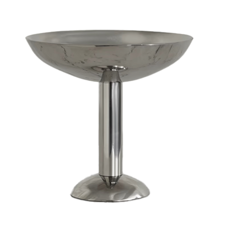While not suspended atop a stem, there are several versions of squat metal dessert cups available at Webstaurant Store, a hospitality industry secret source. Isn’t this vintage-esque version adorable? And at these prices, you won’t worry about the mirror finish getting scratched. In fact, that’ll just add to the charm.