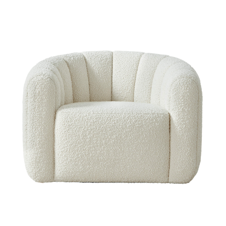 “The oversized stature, stylish channel tufted design, and overall comfort make the chair very attractive and universal for various spaces,” Guyton adds. “The swivel functionality also makes the accent chair more conversational, versus one that’s static.”