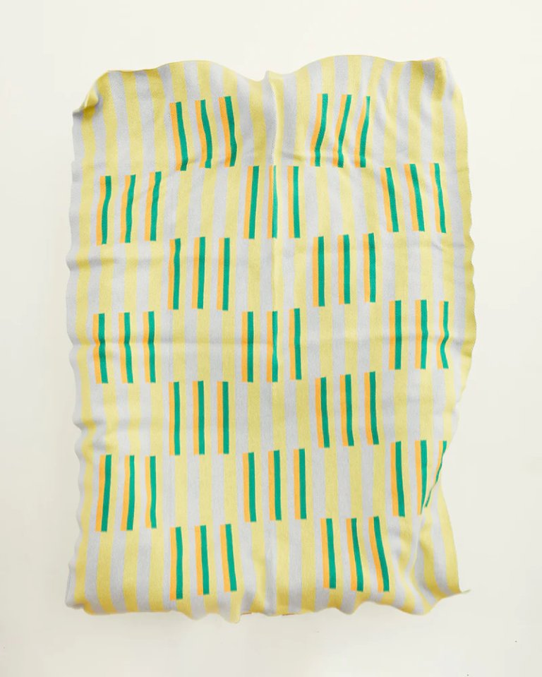 Van Dusen is a master at transforming the banal to bold—just look at what she’s done for the stripe. With Dusen Dusen’s new line of knit throws, checkerboard gets a rebrand with a pattern-on-pattern approach that turns each square into a stripy party.