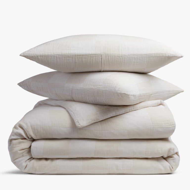 If animal prints can be neutral, there’s plenty of room for checkerboard to blend in—and Parachute’s new collection is a case in point. The bedding brand’s rollout of gauzy duvet covers, woven rugs, and textured shower curtains in an almost imperceptible pattern proves that these squares can play it cool.
