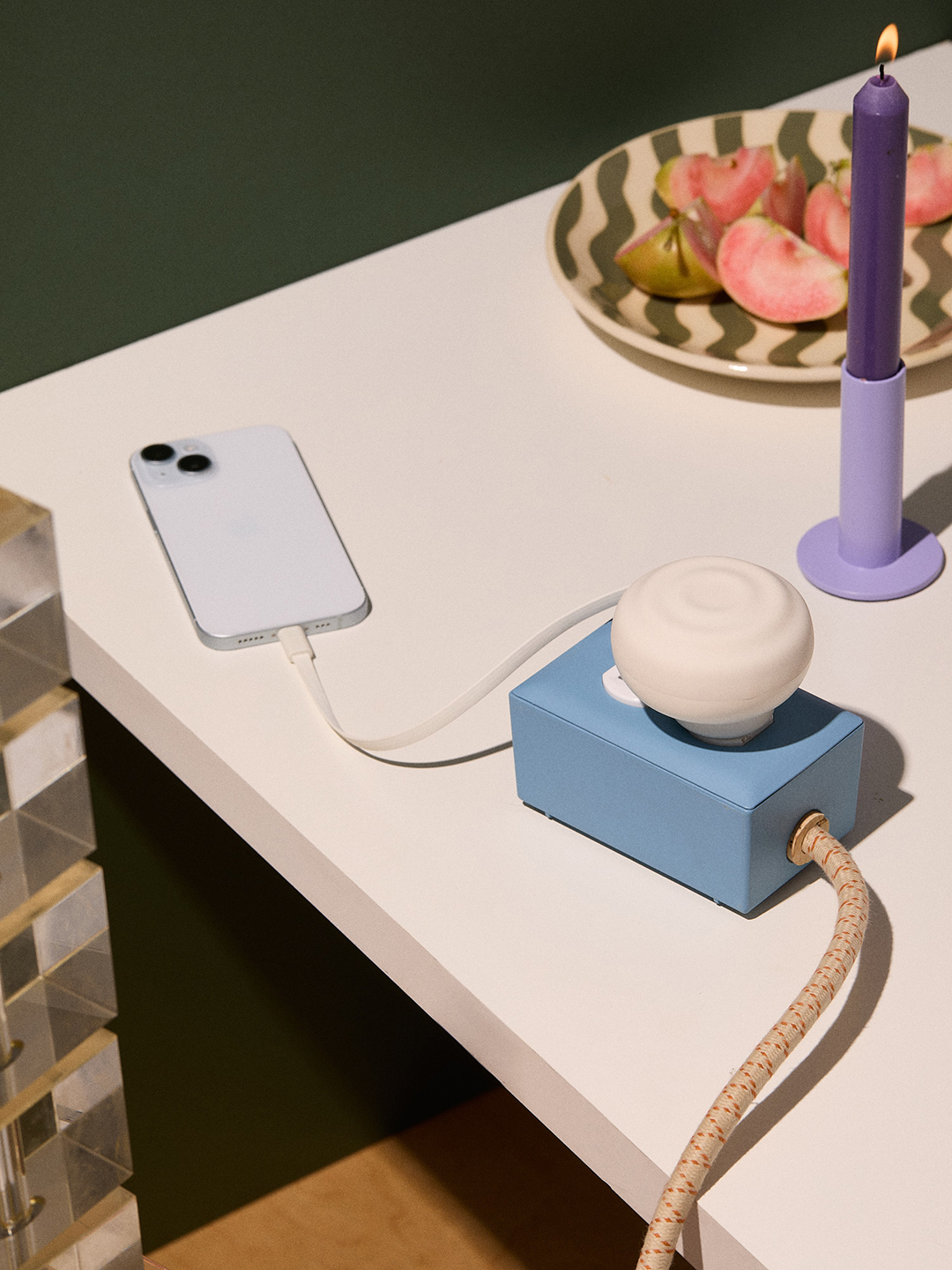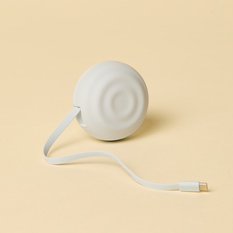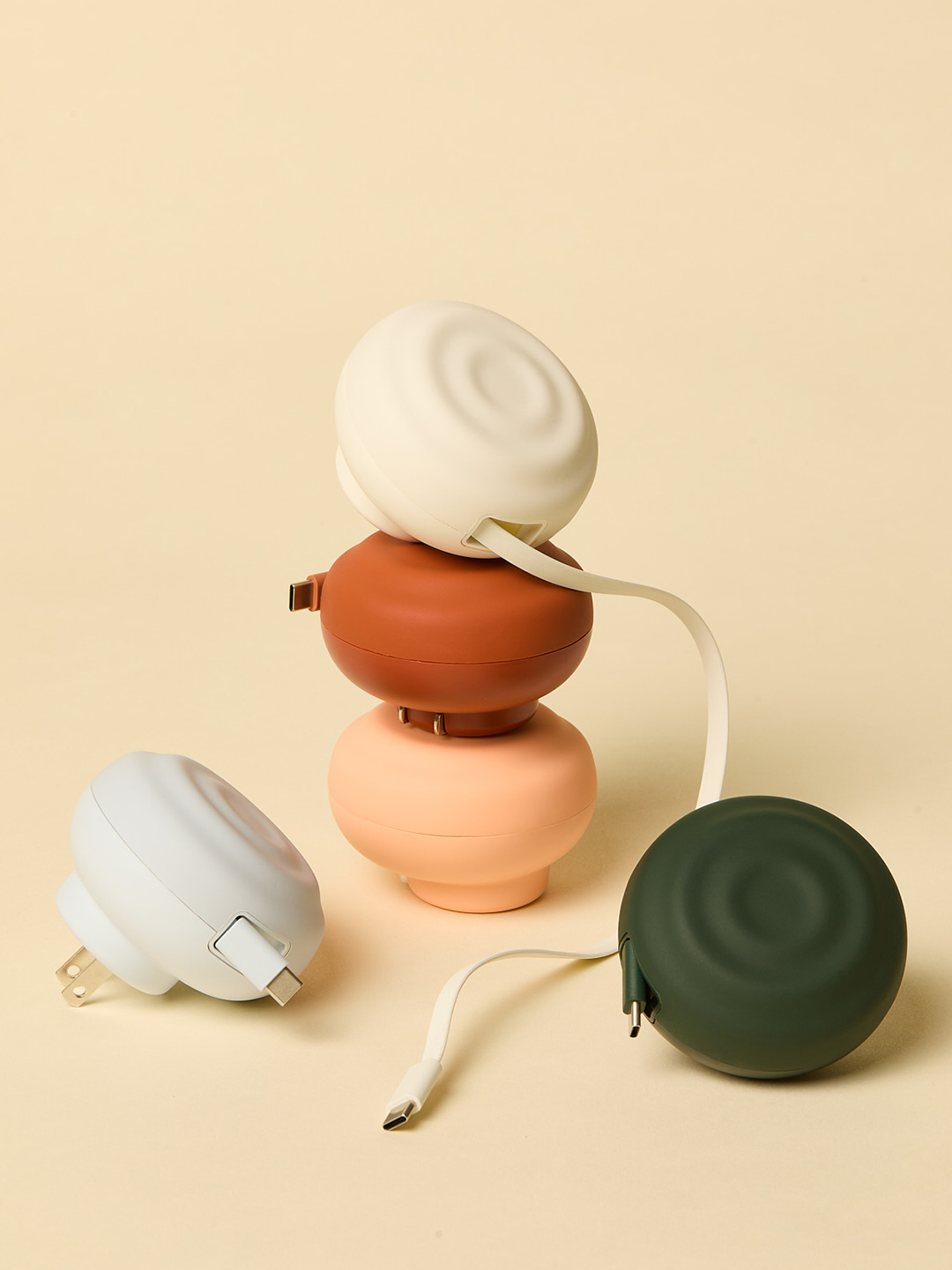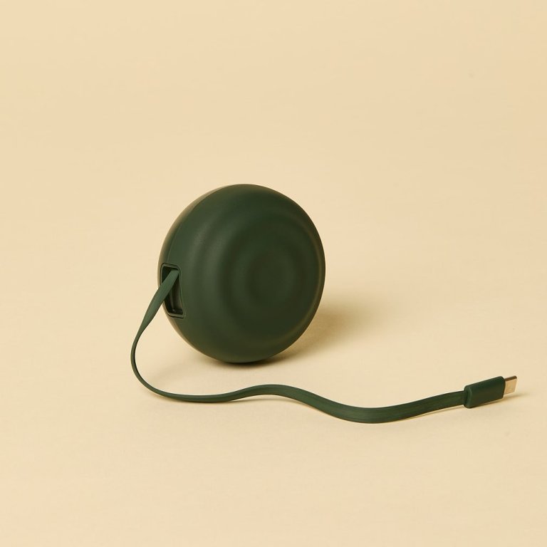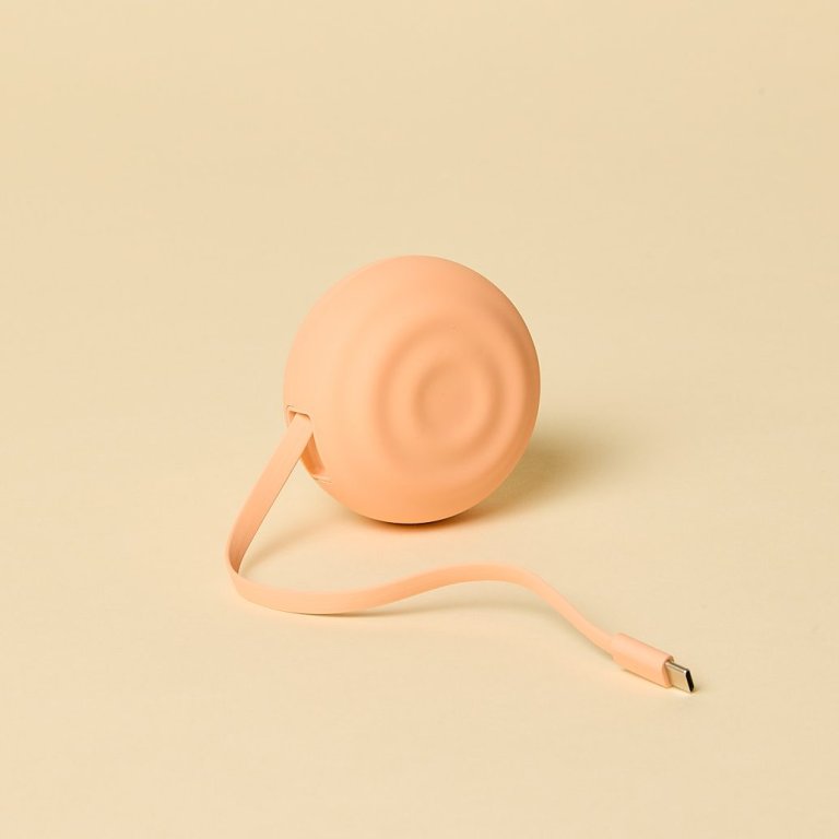 The initial draw? There’s no pesky cord just dangling there all the time. When I first saw the round port, which is made of silicone and post-consumer plastic, I thought it was a tape measure: The cable can extend to 4 feet, and when it’s time to pack up, you just push the discreet button on the side to retract it. The rippled silhouette is also easy on the eyes, which makes a lot of sense given the company was founded by artist and designer Chloe Fields.