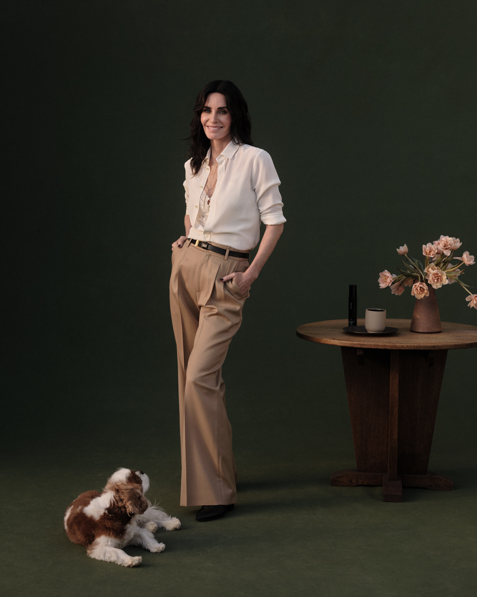 “I really do keep one in my living room,” she says of the candle, an olfactory mix of evergreen woods, juniper berry, and cardamom. “It’s near the fireplace so I can pretend that I’m smelling a real fire, even though it’s too hot [outside to light one].” Which also means it’s a solid tree replacement if you’re not one to shell out for the real thing. Cox, however, does get a tree and says that the holidays are the exception to her mostly minimalist style. “I’m not going to flock my tree—let’s be clear—but I do like some colored lights and a lot of ornaments that just remind me of being a kid. It’s an OTT version of classic Christmas.”