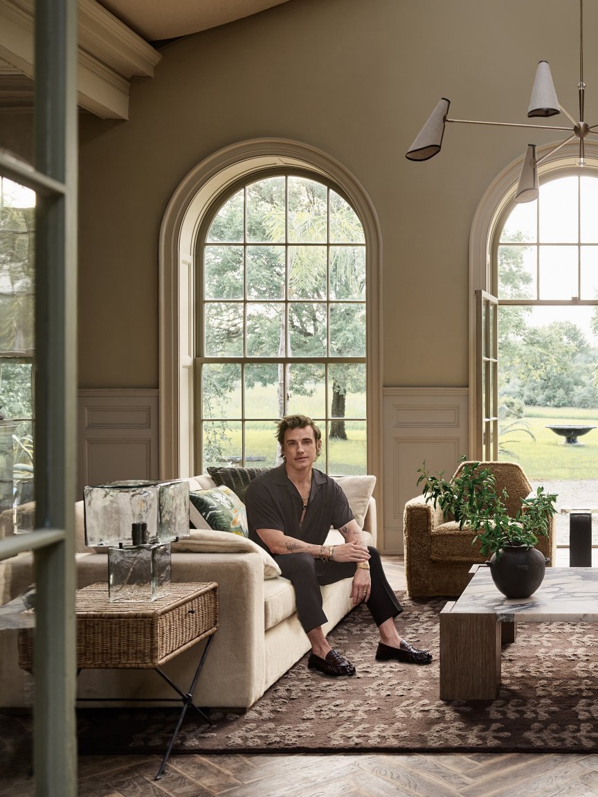 “I’ve got some weird ideas,” Jeremiah Brent prefaced in his first design meeting with Crate & Barrel. Fresh off of launching a collection for Crate & Kids, the interior designer and Queer Eye host was ready to take things to a new level when the brand asked if he’d make an all-encompassing furniture and decor collection next. Referencing his sketchbook, Brent proposed a dining chair with a triangular back, a decorative table that doubles as a pedestal and hidden storage, and a wicker nightstand with “little iron bird feet.” “The weirder I went, the more excited they were,” recalls Brent.