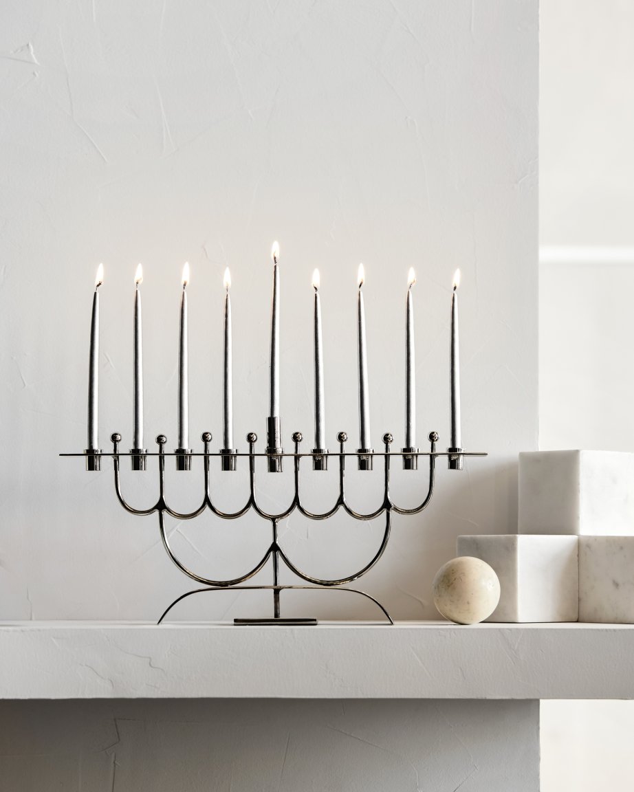 A designer and artist—much like the iconic couple, Charles and Ray, who raised her—Eames is perhaps best known for her sculptural metalwork and striking graphics, both of which appear in this new collection. But of all the new-vintage treasures, a favorite that stands out by a mile is the Lucia Menorah. The Hanukkah holiday centerpiece is elegant, eye-catching, and versatile all at once.
