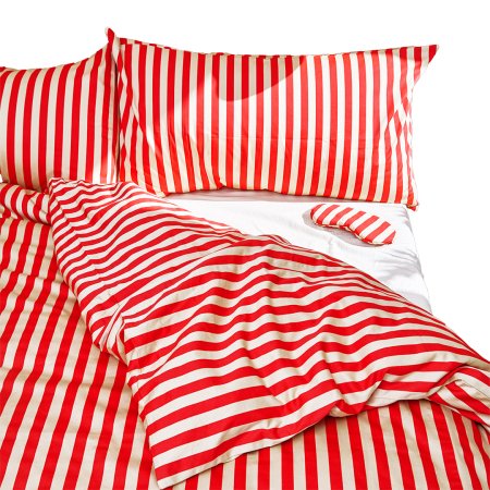 Big Night busted out of the kitchen with a four-piece capsule collection alongside Far West, the creative studio behind the design of El Cosmico and Hotel San Jose among others. The red and sand color combo keeps the vibe decidedly more laid-back than preppy—and there’s a 100% cotton duvet, pillowcases, eye mask, and robe to choose from.