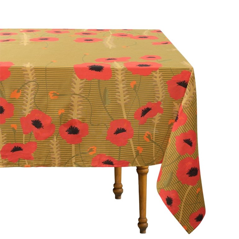 Poppies dance all across the new Harvest Bloom collection from Cabana magazine and Athens-based Crini & Sophia. The line of tablecloths, embroidered placemats and napkins, and hand-painted plates is inspired by Demeter, the ancient Greek goddess of harvest and agriculture. Threads used to make each textile are sourced from the Benaki Museum’s NEMA Passementerie, the only place traditionally producing ribbons, braids, tassels, fringes, and more that is operational in Greece today.