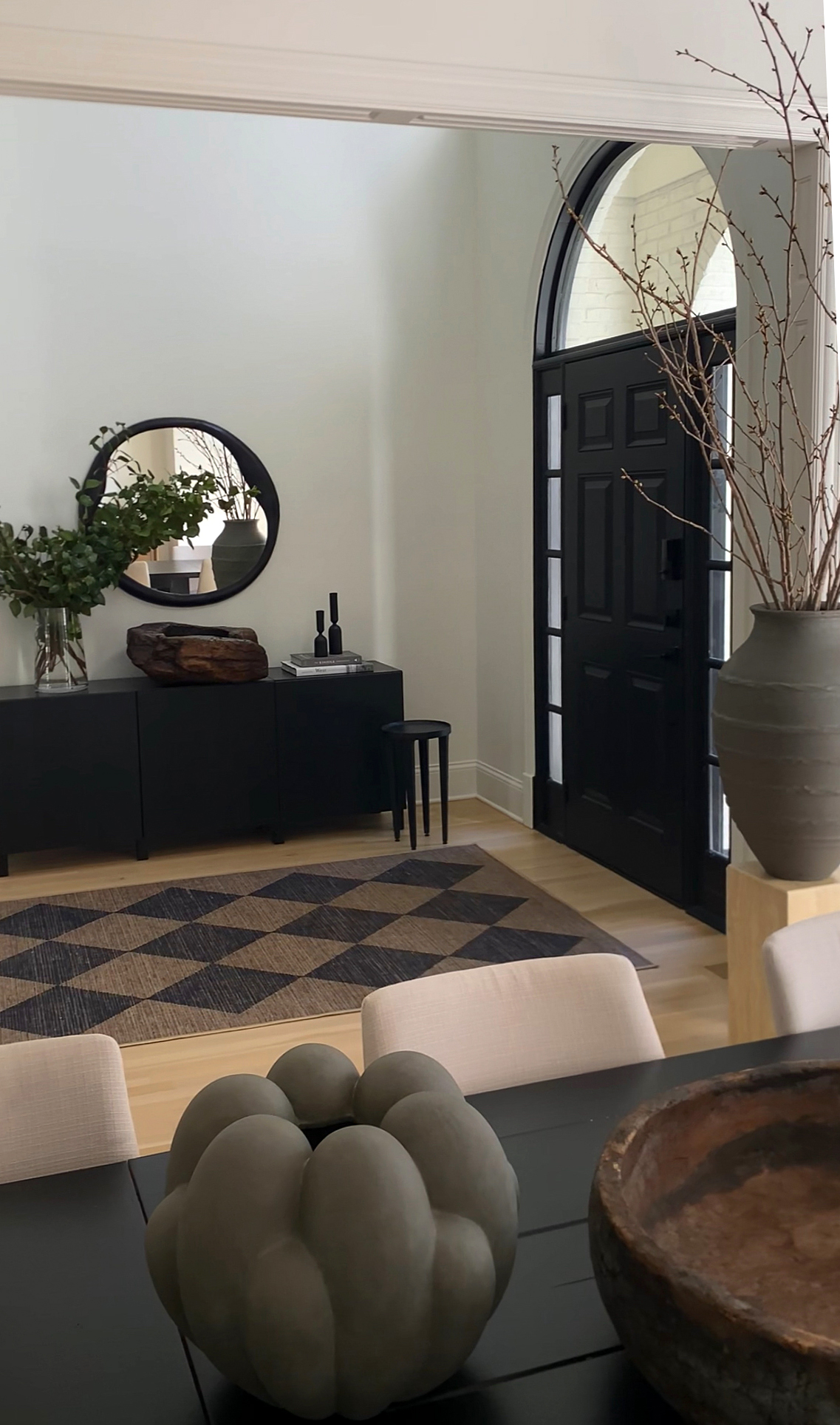 The Salerno Soft Black Re-Jute Rug was the perfect fit for home decor enthusiast Sarah Wisted’s entryway, where black accents rule.