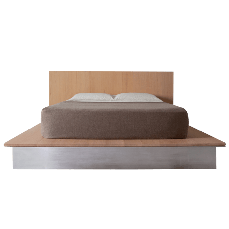 In the hands of Los Angeles furniture studio Kalon, humble Douglas fir and aluminum are modern marvels. Layered seamlessly, with nary a single frill, they give this bed an almost floating effect.