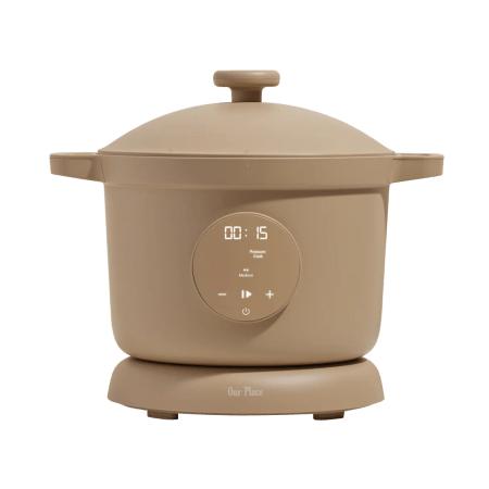Our Place’s Dream Cooker pressure cooks, slow cooks, sears, sautés, and keeps dishes warm without compromising on personality thanks to its colorful matte shell and minimal control panel.