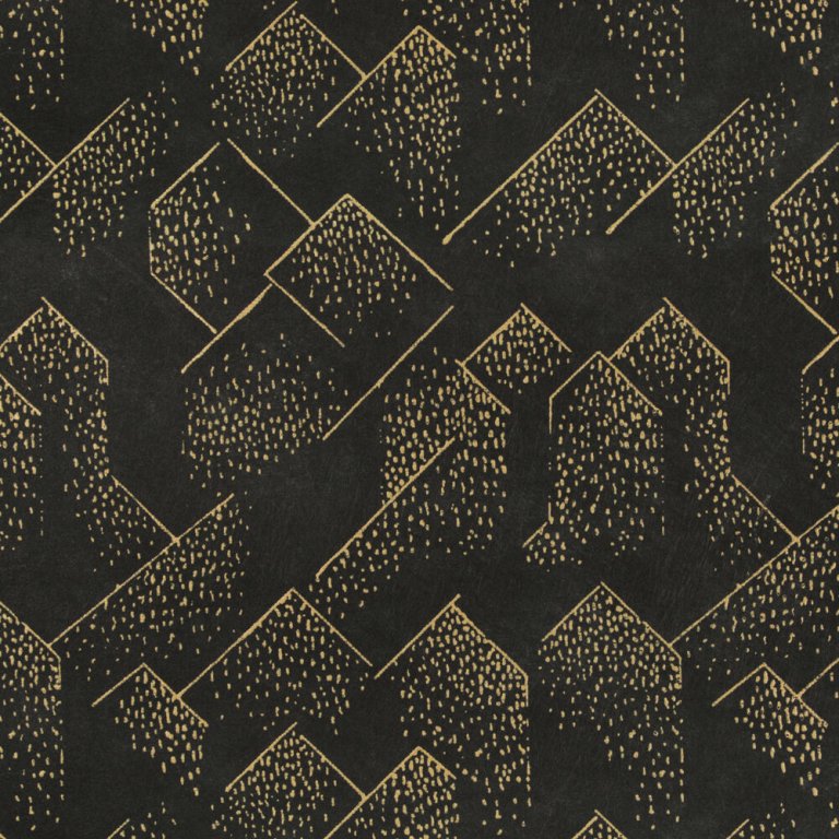 The striking yet somewhat ominous print is the creation of graphic designer Alex Maziekien. The fragmented pattern evokes the image of the landscape, but more prominently represents the looming question marks in Alice’s mind (Maziekien describes her as someone who is “constantly trying to hold it together” but “the cracks in her life are so apparent”). Drawing on the Japanese art of kintsugi, the practice of mending broken pieces of pottery with lacquered gold, was a fitting jumping-off point. “It feels like a more glamorous way to handle a flawed situation. Alice would fill in the gaping cracks in her life with gold if she could,” shares the designer.
