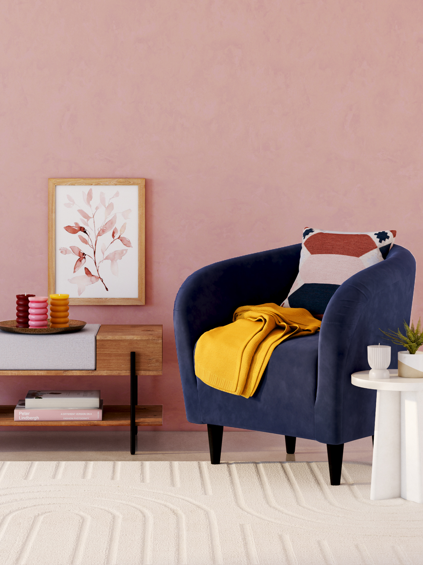 Keep a neutral sofa or chair feeling lively with vibrant, interchangeable accessories, like this ombré velvet throw that can stand up to spills (it’s machine washable!).