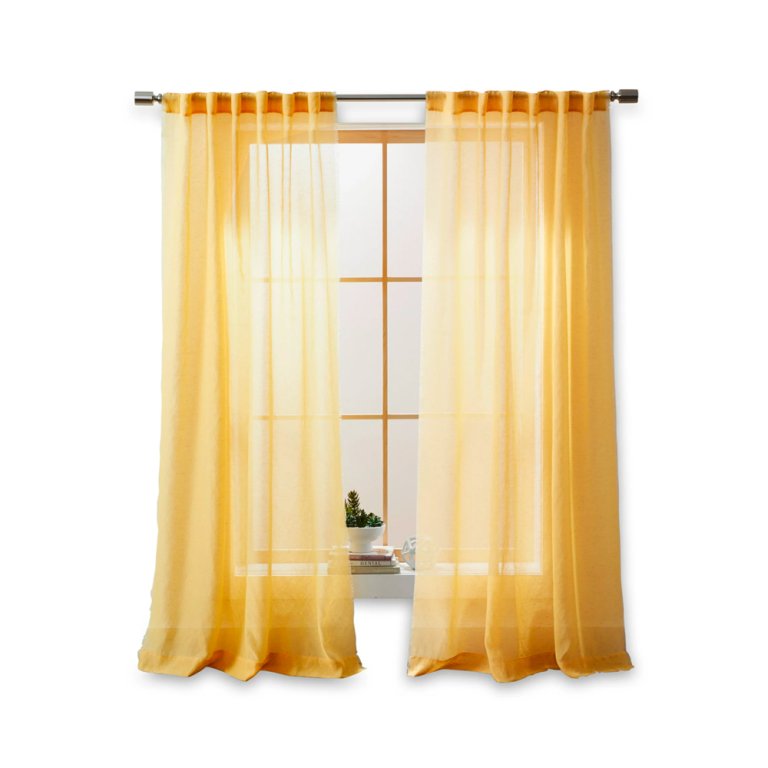 The weather is warming up, but on the hottest days, you need to stay cool and protected. Keep the sunlight sans sunburn with sheer marigold drapes.