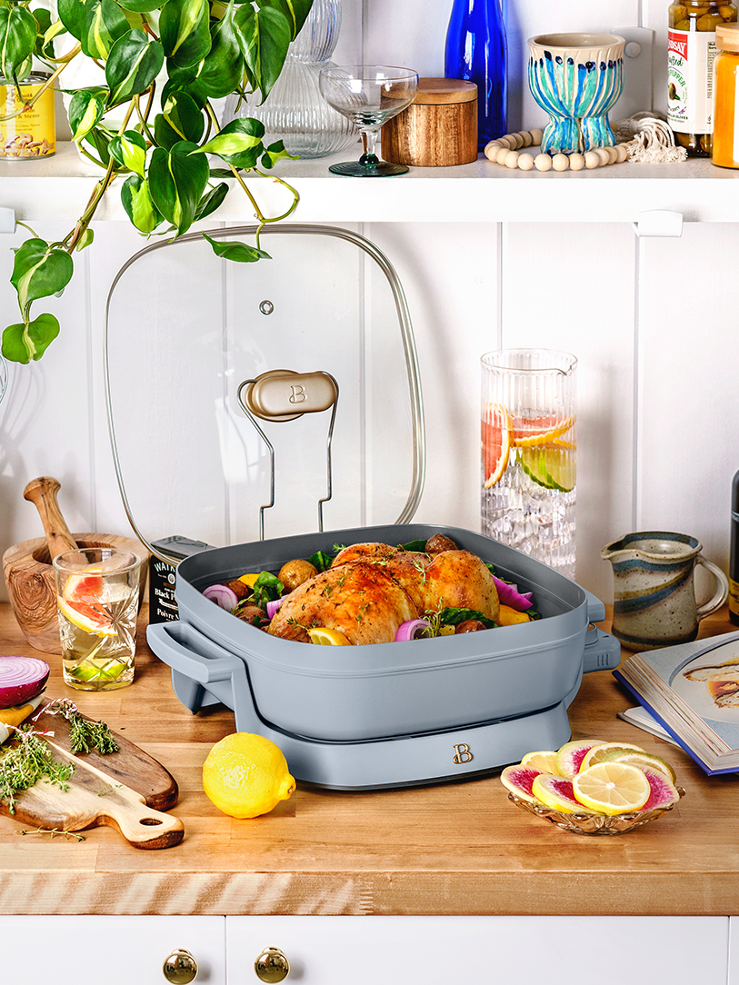 When Drew Barrymore launched her Beautiful kitchenware line last year, she changed the countertop game. Seemingly inspired by the sage cabinet trend, her debut collection, which touted a double-basket air fryer and a two-slice touch-screen toaster, proved that small appliances can be colorful, functional, and affordable. Now the actor and Flower Home founder may be giving the Crock-Pot some competition with a tool that makes food prep easier, especially in tight quarters. The new 5-in-1 Expandable Skillet eliminates the need for a bunch of individual hands-off products that tend to clutter up your kitchen. This one practically does it all.