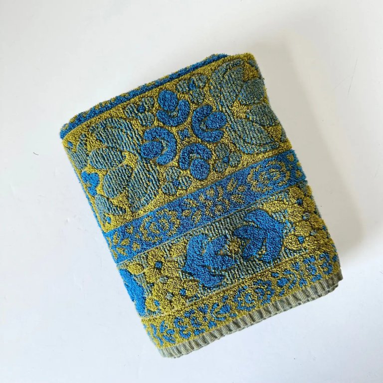 I have vintage floral towels, and every time I put them over the shower rod to dry, I am so happy. I feel like I’m in the 1950s or the ‘70s, living my life. I can’t find any towels in the modern age that make me feel like [that].