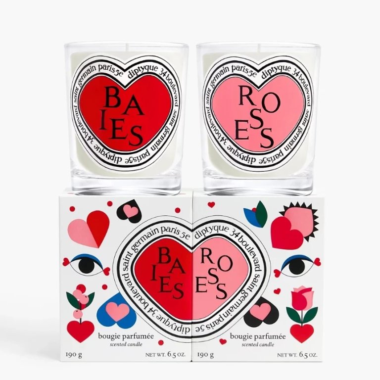 Holiday-themed candles are hit or miss, but our entire team is crushing on Diptyque’s limited-edition Valentine’s Day duo. Available in the brand’s crowd-pleasing Baies and Roses scents, the sweet heart graphic would look perfect on a nightstand.