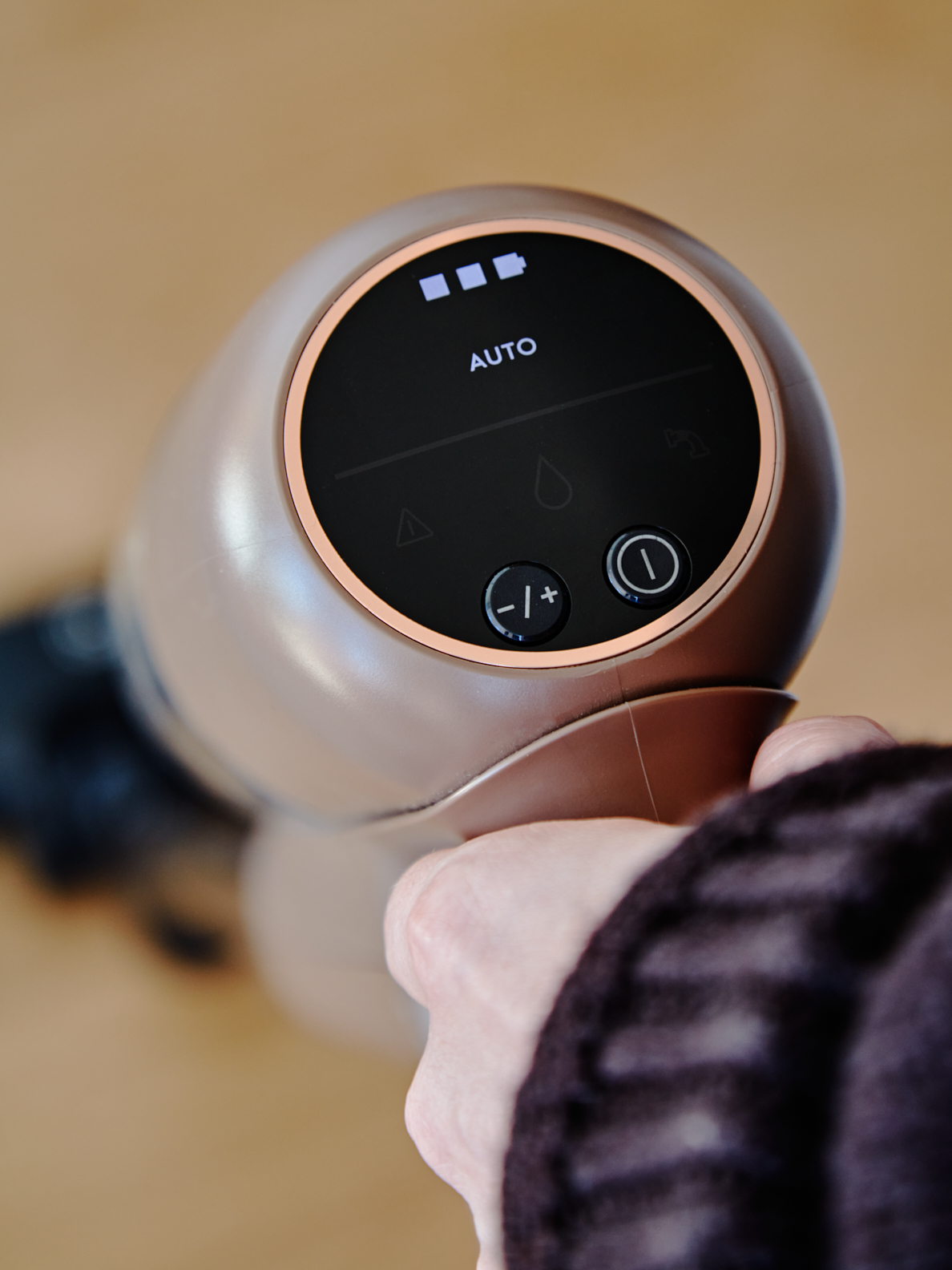 The walnut brown color of the Ultimate700 is one of the most sophisticated hues I’ve seen applied to a vacuum, especially at this pricepoint (more on that later). There’s something soothing about taking it out for a spin versus wielding something space-object purple, yellow, and red. It’s slim all around, even the dust canister, and the digital interface is easy to read. At an extremely lightweight 4.9 pounds with a full tilt design, the appliance is no problem to maneuver around without a lot of muscle, and it gets even lighter if you use one of the smaller configurations.