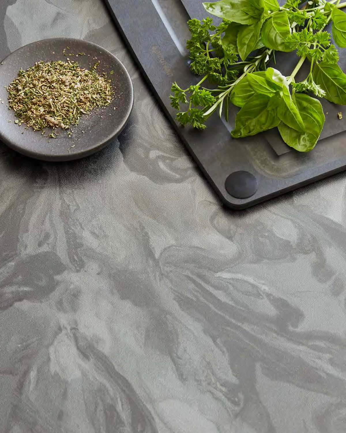 But it delivers more than style alone. Marbled Gray has heaps of functionality, too. It has all the easy maintenance and durability of classic Formica® laminate surfaces in part due to EliteForm technology, which makes it scratch- and stain resistant. So rest assured, you can set a wineglass on it without having to worry—unlike typical marble.