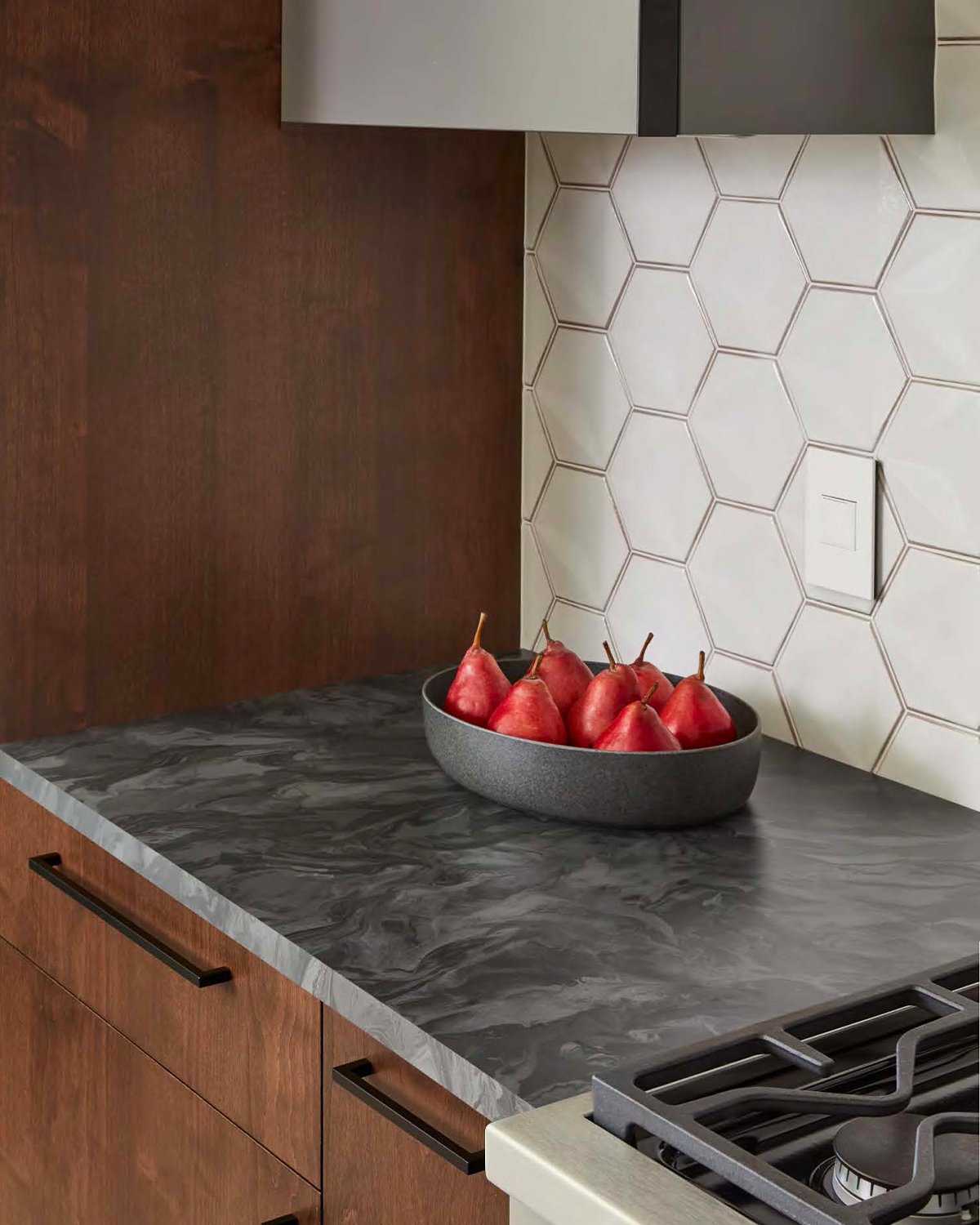 The cherry on top? Marbled Gray has Formica’s signature SatinTouch™ finish, which has a silky feel while still offering a matte look. It also enhances the surface’s organic swoops and wisps of color, tricking you into seeing and feeling a piece of stone.