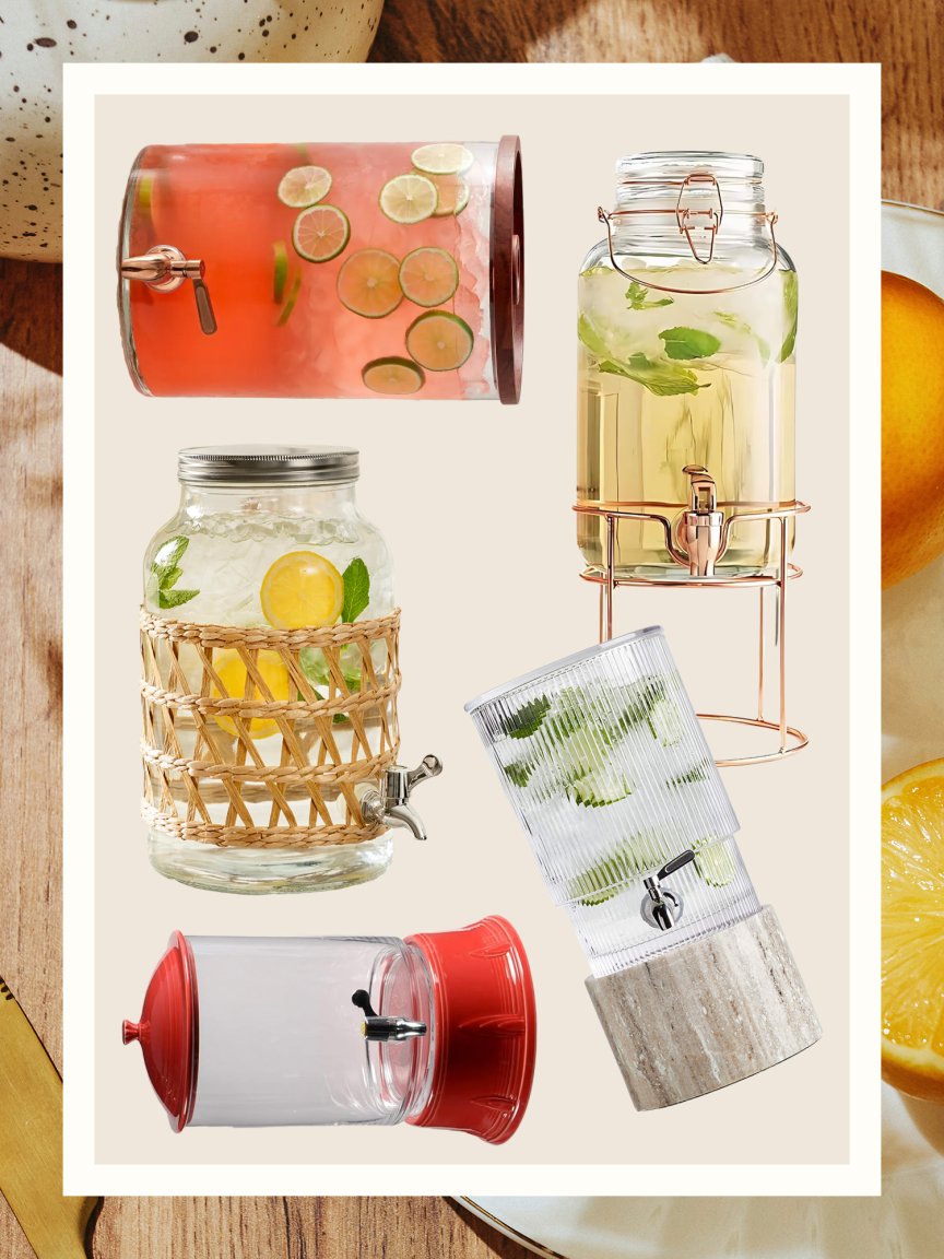 The simplest of the bunch, these beverage dispensers get their personality mostly from their silhouettes. Psst: a leggy stand allows you to store cups right underneath.