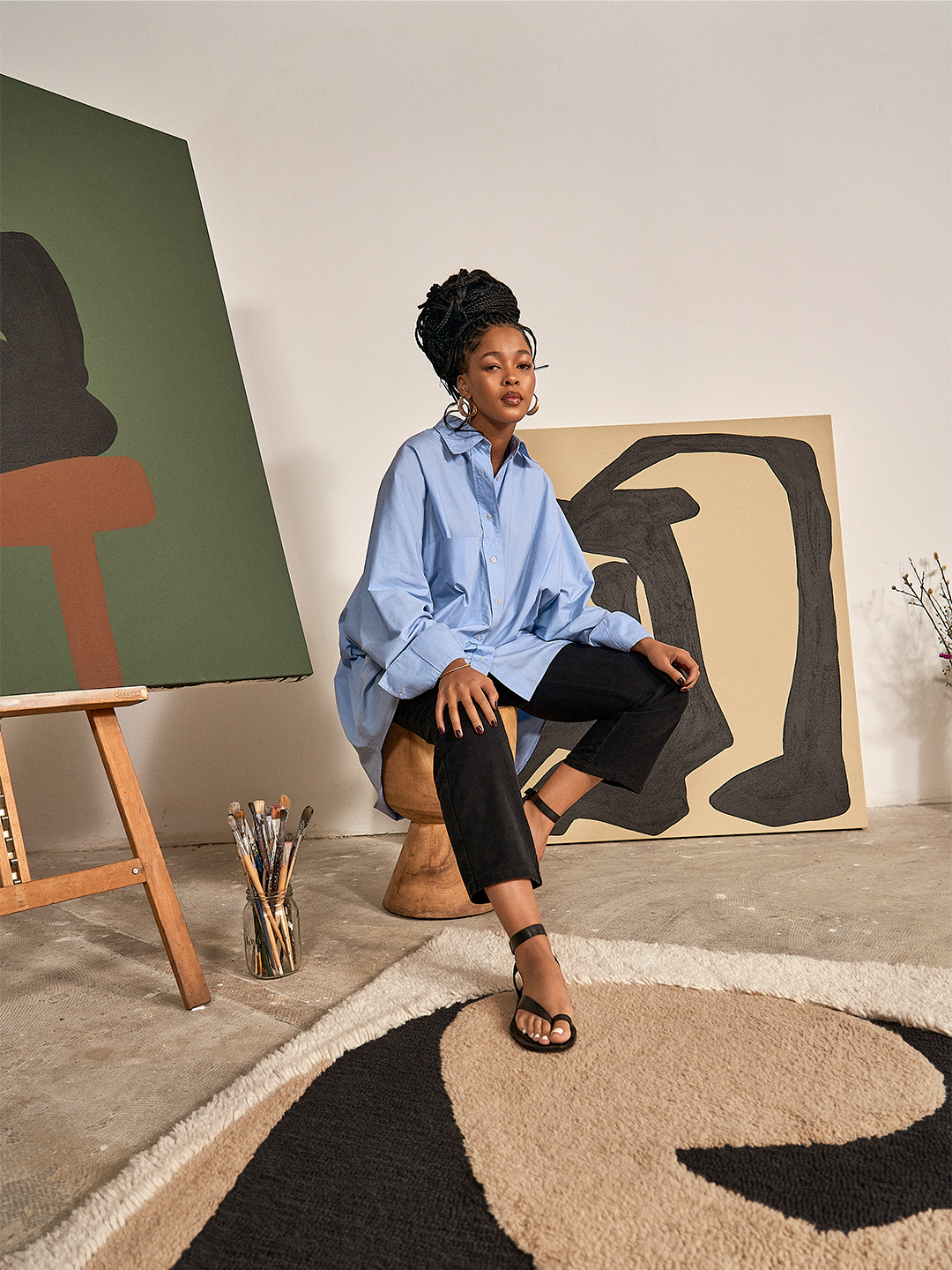 Of the 17 items in the collection, we have our eye on the tufted area rugs. While they’re both bigger ticket items for H&M Home (they start at $349), we’re still calling them a steal—one of Wolf’s originals on canvas will cost you around $3,700. Similar to her paintings, the floor covering the Johannesburg-based artist designed features organic, earth-toned swirls, while various pile heights add texture. Vittoria’s version consists of brightly colored blobs that almost look like mountain peaks. Both rugs are made from 100 percent wool, so they’re as cozy and durable as they are culturally resonant.