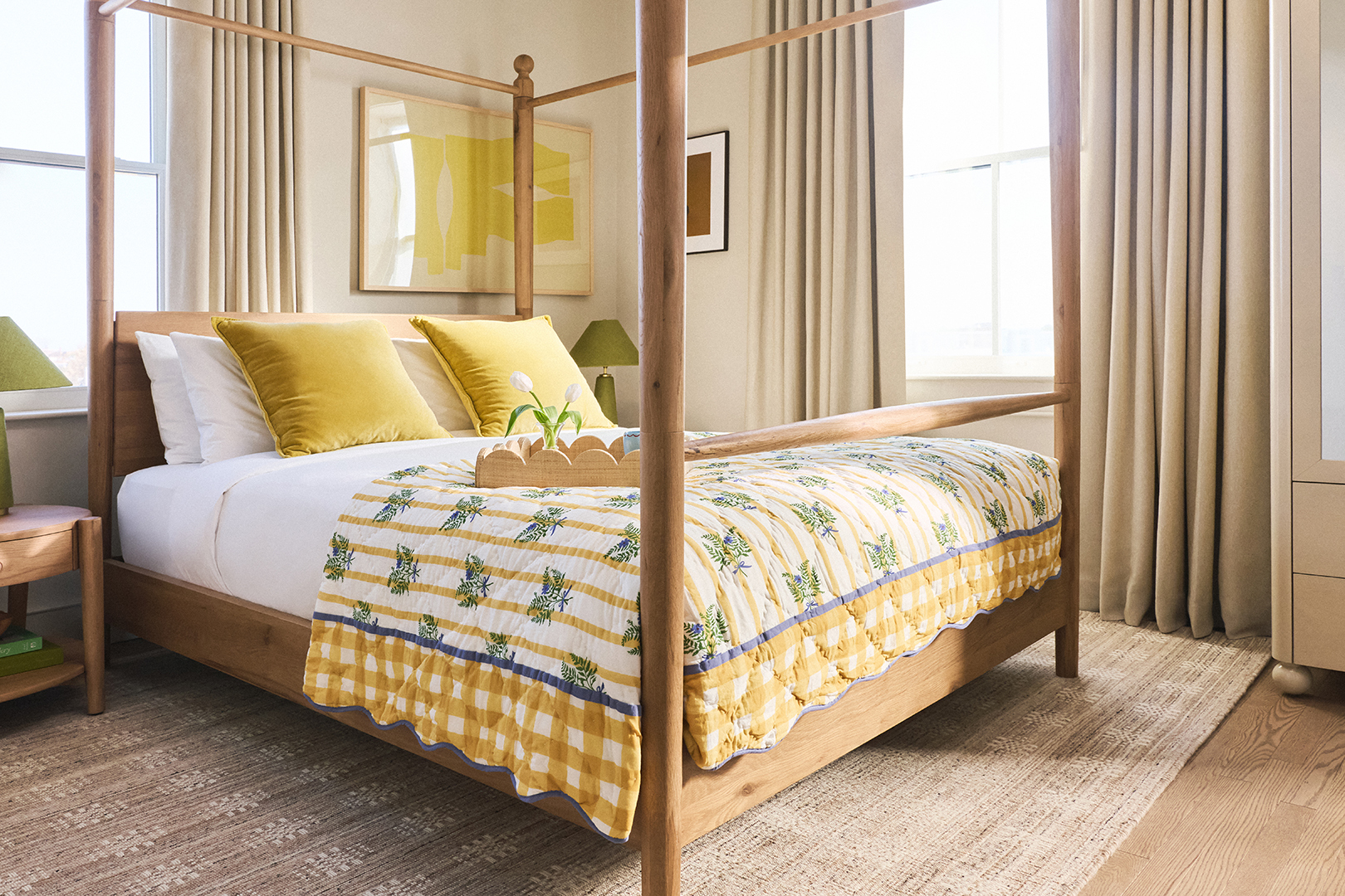 Before you even seat your bag down in the airy, pastel-drenched Anna Suite in Philadelphia’s Hotel Anna & Bel, you’ll want to redecorate your entire home. The reimagined accommodations, designed in collaboration with Anthropologie Home, lean fully into the fantasy: What if every chair, glass, and quilt whispered, you can take me home? Because, yes, everything you touch, sit on, or casually fall in love with is available to buy via QR code. Let’s take a tour.