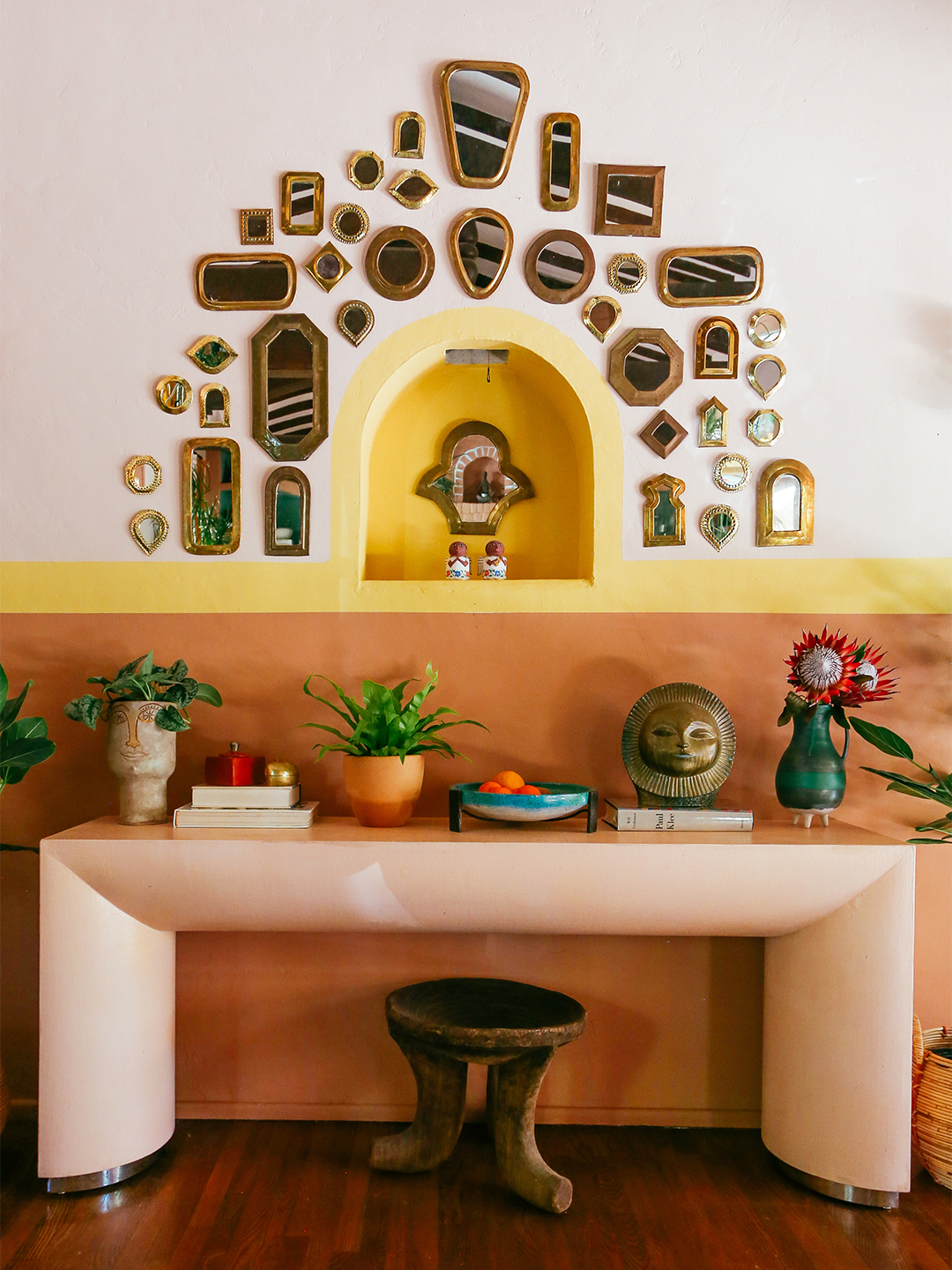 So, for example, in my current home, I really wanted to add a feeling of warmth to our living room, which has very high ceilings. I thought to myself, What’s the feeling I want to have in here? I want a feeling of warmth and something that feels inviting and cozy. So we ended up painting the walls in two tones, in a terracotta and in a very light pink to add that warmth. And now, as soon as people walk in, they’ll say, “Your home is so warm and inviting.”