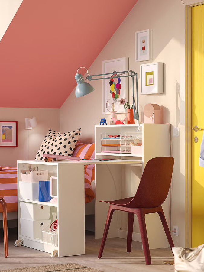 Other ways you could use this nifty little space: it’s the perfect sewing desk, with plenty of storage for a machine and supplies; fill its shelves with paints or oil pastels and turn it into a mini art studio; or cover it in plants and make it your official re-potting station. It’s as creative as you want to make it. And with this Billy coming in at less than $150, it’s an affordable buy for not one, but two pieces. It’s like they’ve already done the DIY for you.