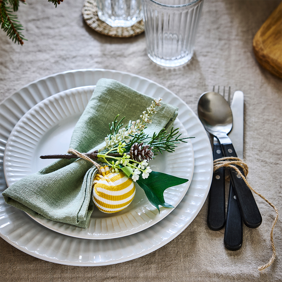 Whether it’s a hack, editor-approved furniture, or just a great bargain, we stand by IKEA. With the holidays around the corner, the Swedish retailer is bringing a dash of good cheer home with fresh decorating inspo from its festive season catalog. This year, designer Cecilia Petterssen looked to Swedish folk art to inform the Vinterfint collection of candles, tableware, decorating essentials, gift wrap, and ornaments. Our favorite part of the catalog isn’t a single product but rather its approach to taking your favorite ornaments beyond the tree. Keep reading for five ways to get the look.