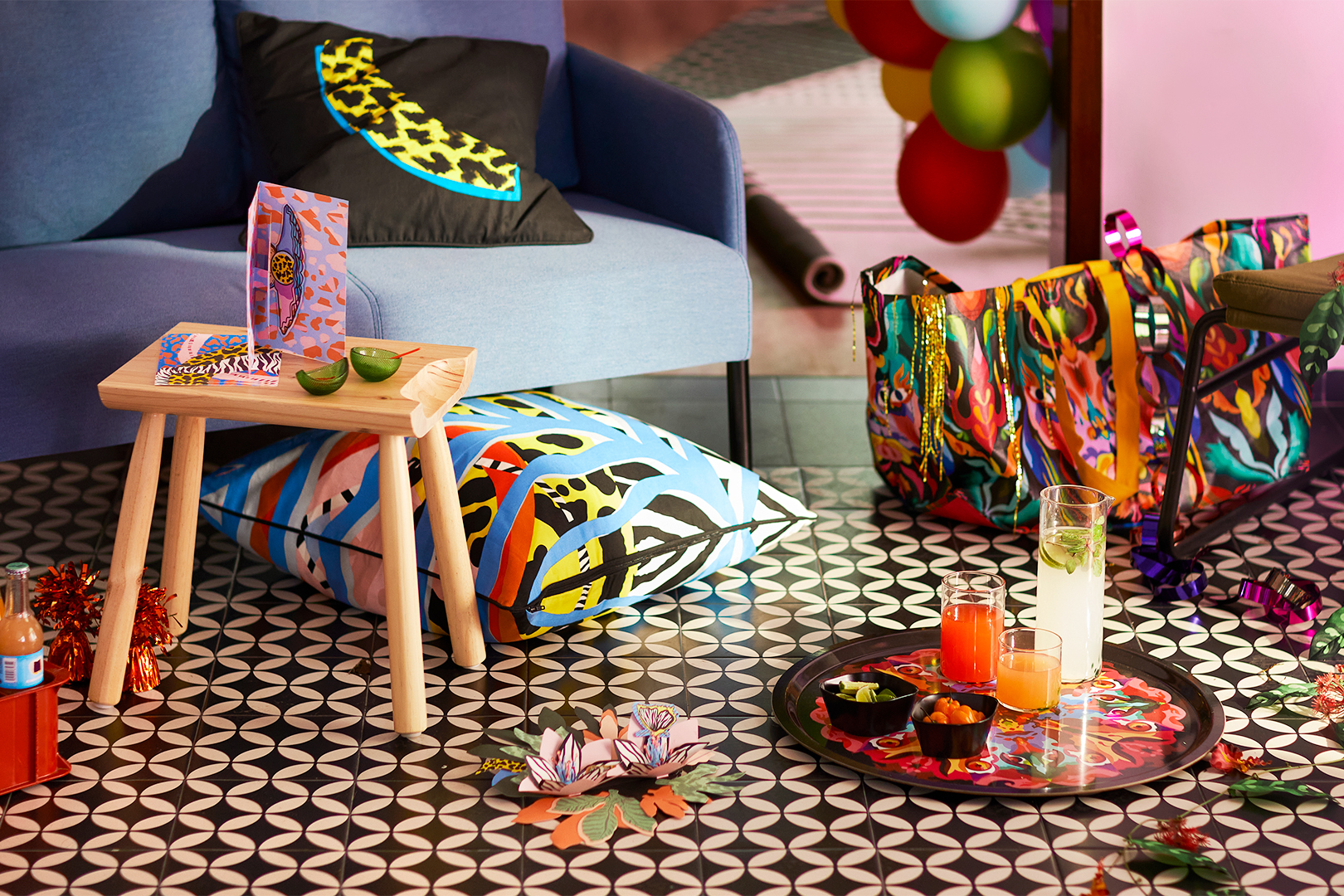 The 30-piece assortment, which will hit IKEA stores starting in April, is centered around outdoor gatherings, and each participating artist interpreted the task through the lens of their own traditions. The result? A colorful collection of products ranging from a tablecloth with an abstract image of the Andes mountains to salad servers inspired by the cueca, the national dance of Chile. Naturally, there are also two limited-edition riffs on the retailer’s classic Frakta bag, one designed by Centeno and the other by Colombian multimedia artist Diana Ordóñez.